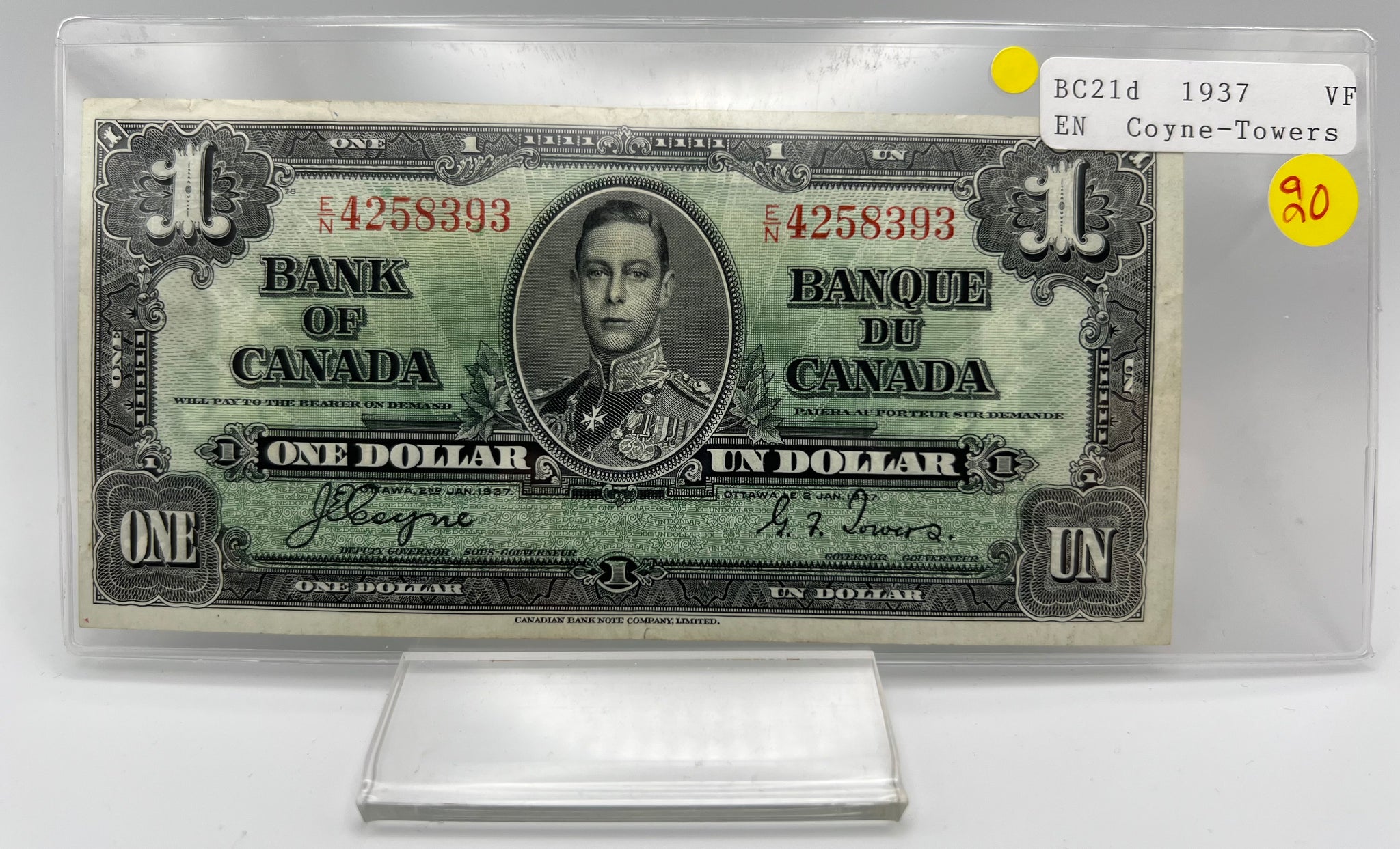 1937 Bank of canada BC-21d One Dollars VF-20 Coyne Towers, Serial-EN 4258393