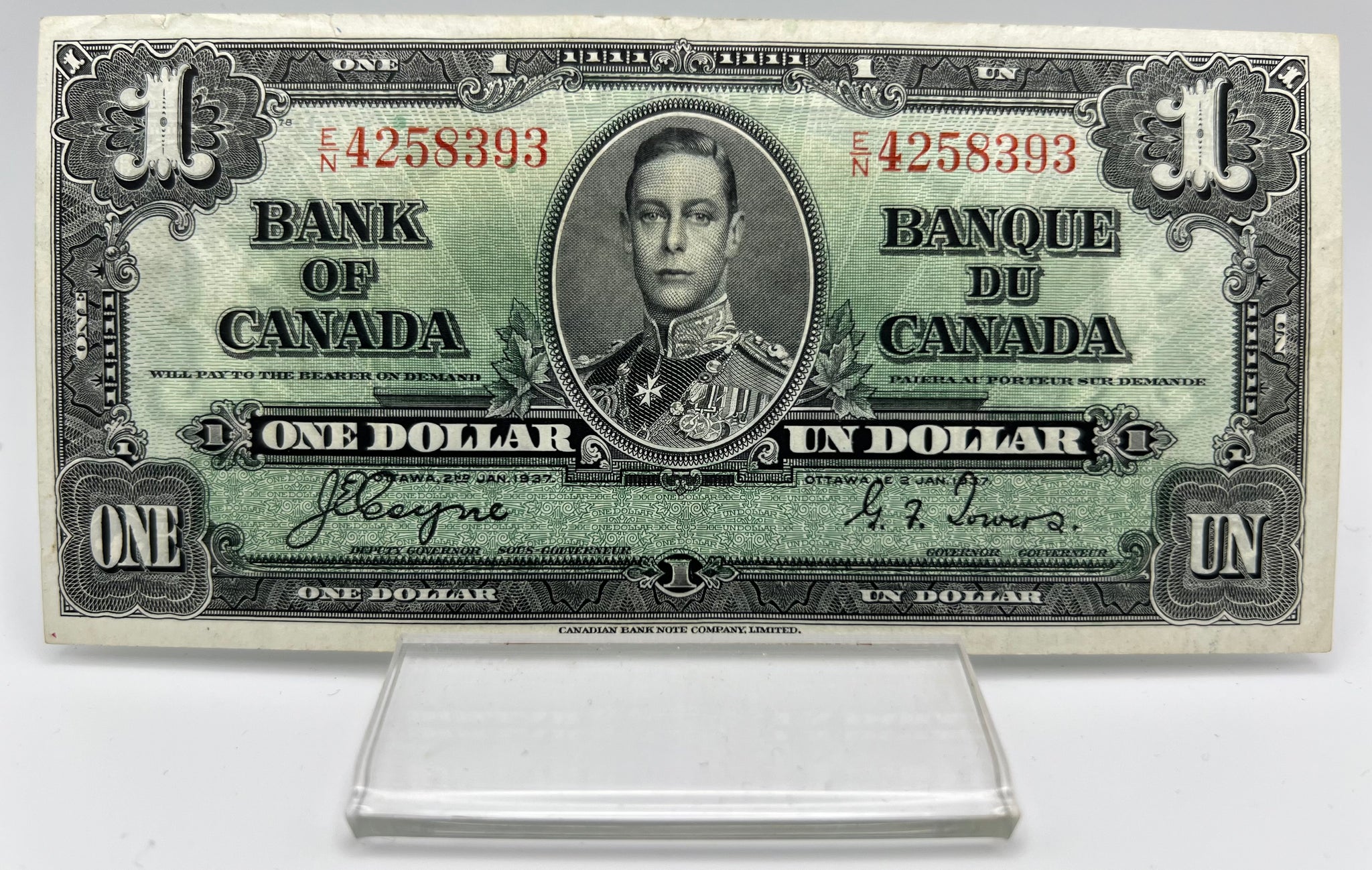 1937 Bank of Canada BC-21c One Dollar VF-20  Coyne Towers, Serial-EN 4258393