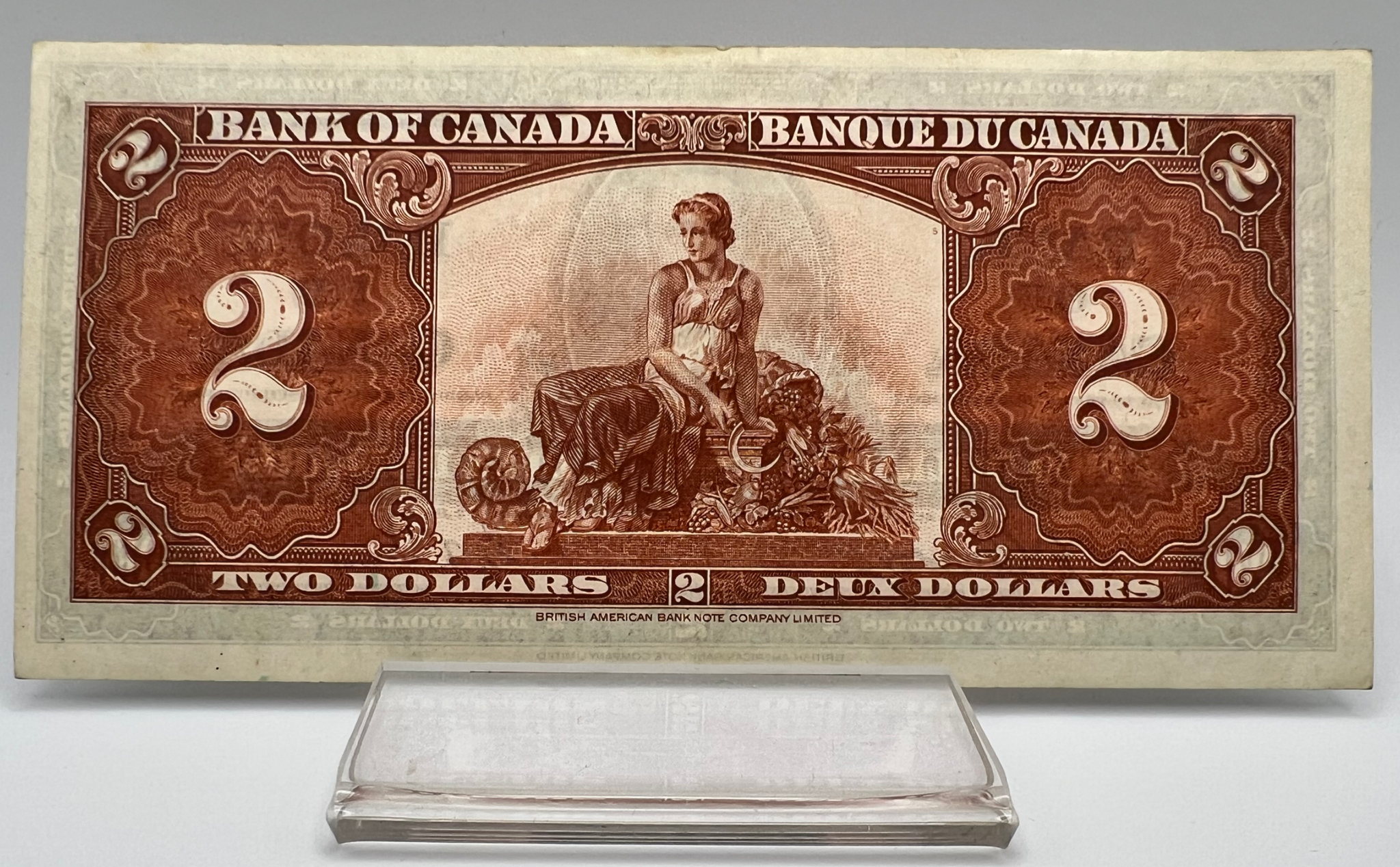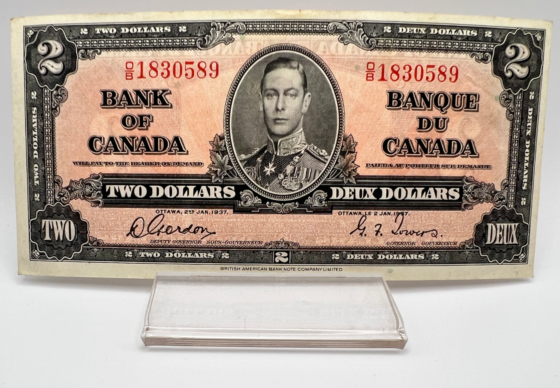 1937 Bank of Canada Two Dollars AU-50 Serial-OB 1830589