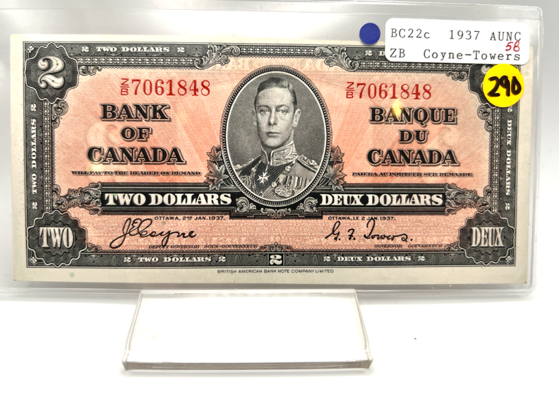 1937 Bank of Canada Two Dollars AU-58 Serial-ZB 7061848
