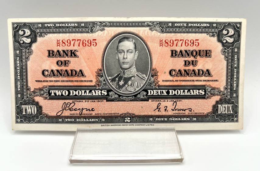 1937 Bank of Canada Two Dollars AU Serial-KR 8977695