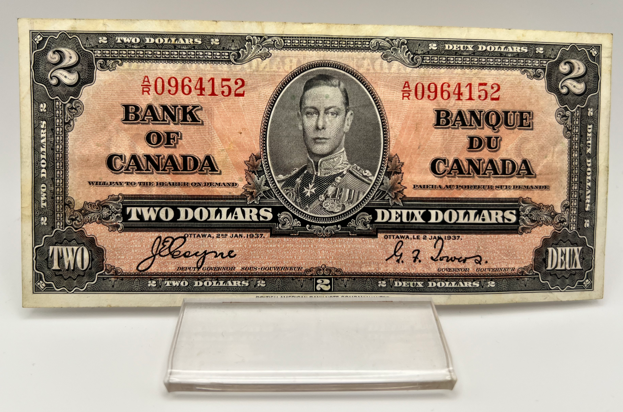 1937 Bank of Canada Two Dollars VF-30 Serial-AR 0964152