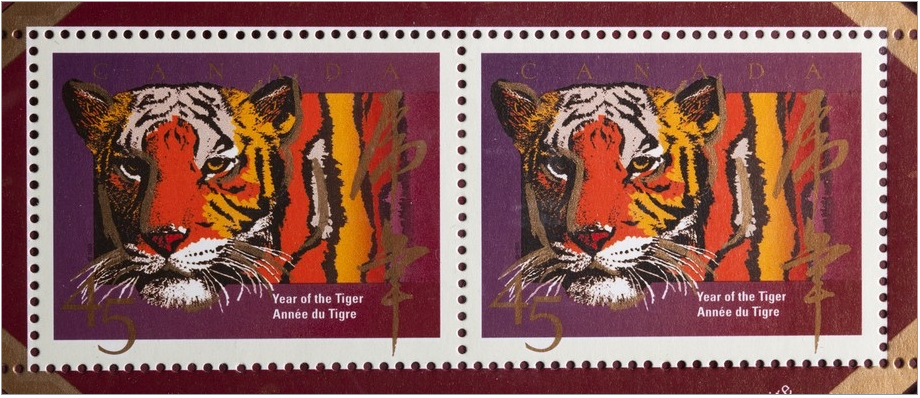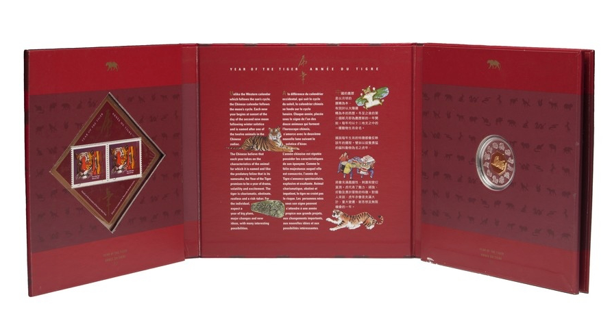 1998 $15 Fifteen Dollars YEAR OF THE TIGER - Sterling Silver Coin And Stamp Set Quantity Sold : 8,000