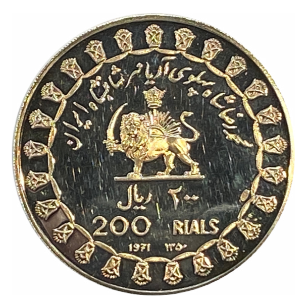 1971 200 Rials - Fine Silver Proof Coin-Mohammad Rezā Pahlavī Imperial Couple