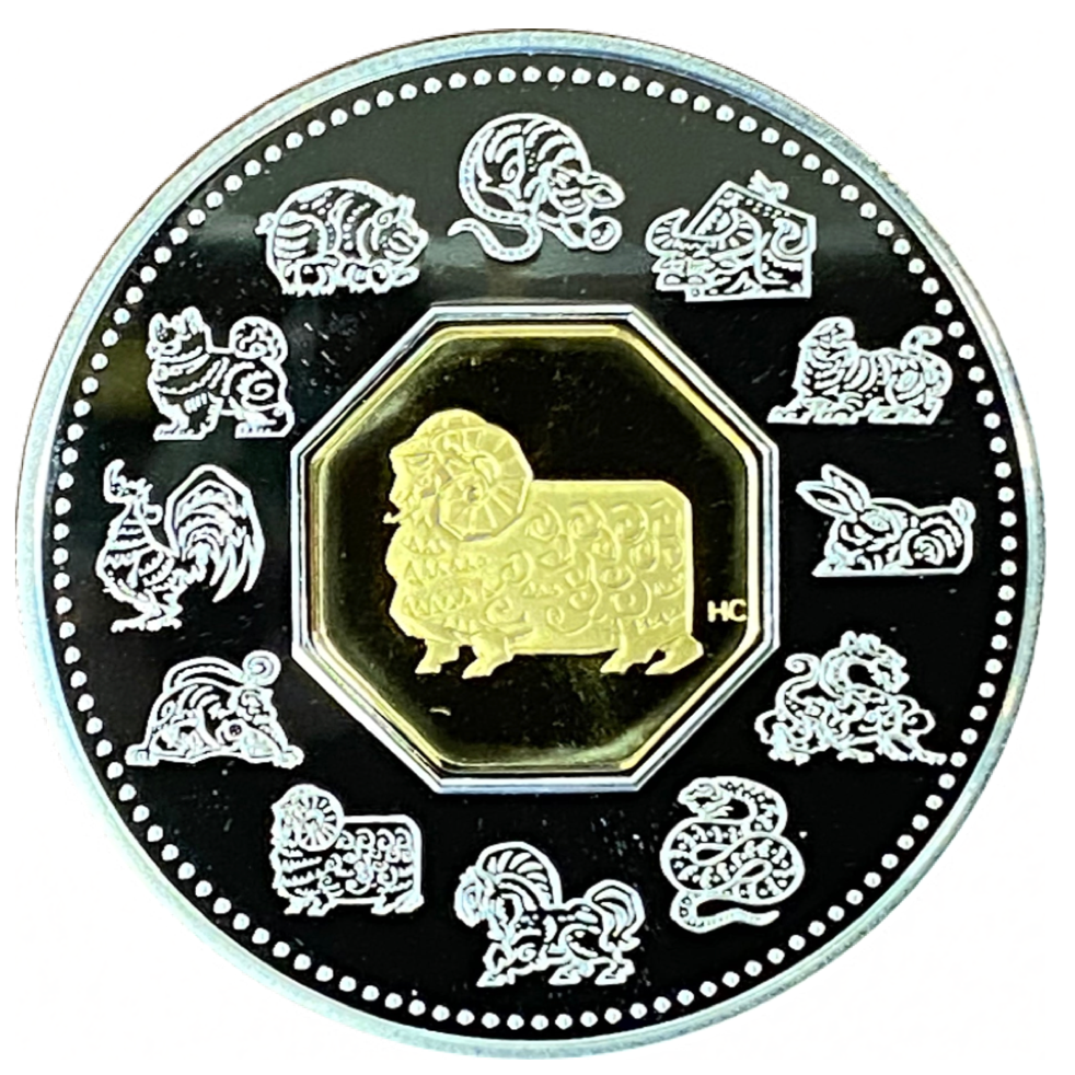 2003 $15 Fifteen Dollars YEAR OF THE RAM- Sterling Silver Coin And Stamp Set