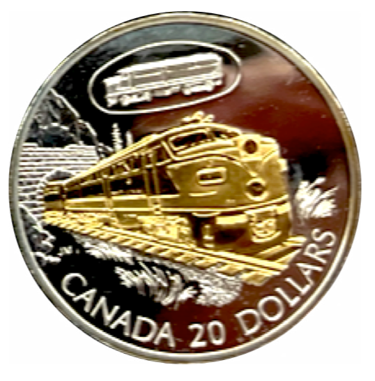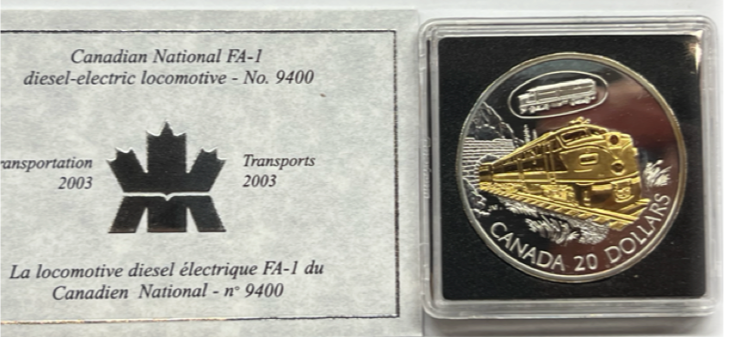 2003 Canada 20 Dollars Transportation on Land, Sterling Coin - C.N.R. FA-1, Diesel Electric Locomotive