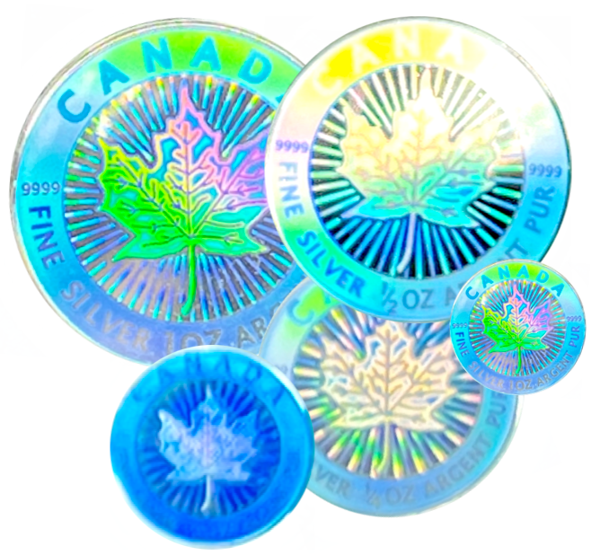 These maple leaf coins were struck to commemorates the 15th anniversary of the maple leaf 1998-2003 all coins are struck with maple leaf hologram.