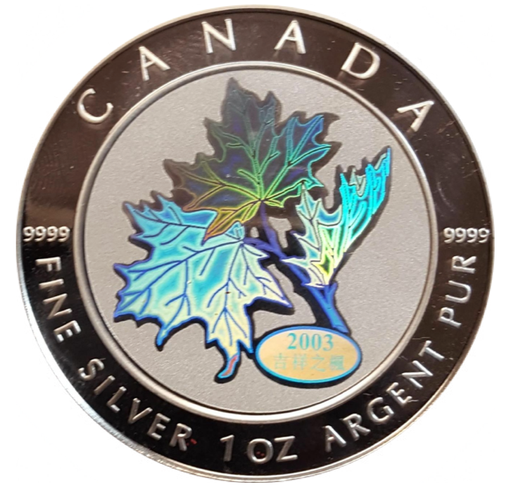 2003 Silver maple Leaf with Holograms-Good fortune