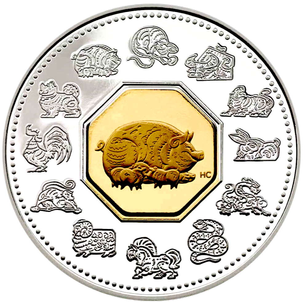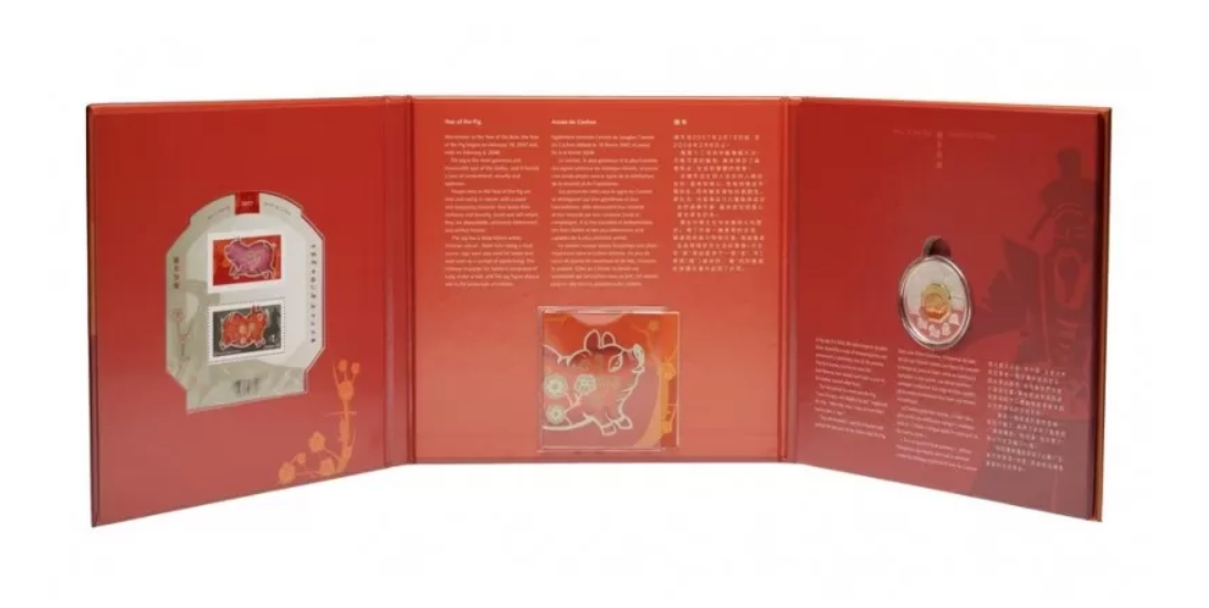 2007 $15 Fifteen Dollars YEAR OF THE PIG- Sterling Silver Coin And Stamp Set