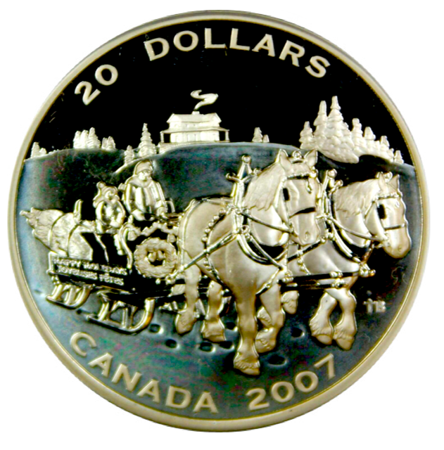2007 20 Dollars Fine Silver Coin, Holiday Series- Holiday Sleigh Ride