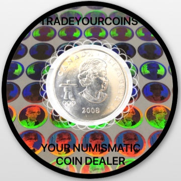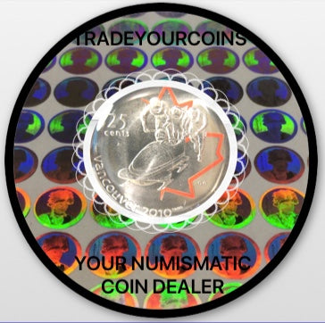 2008 Canada Nickel Plated Steel Quarter- 25 Cents, Sport card-Painted leaf-Bobsleigh