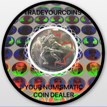 2008 Canada Nickel Plated Steel Quarter - 25 Cents, Sport Card-Painted Leaf-Figure Skating