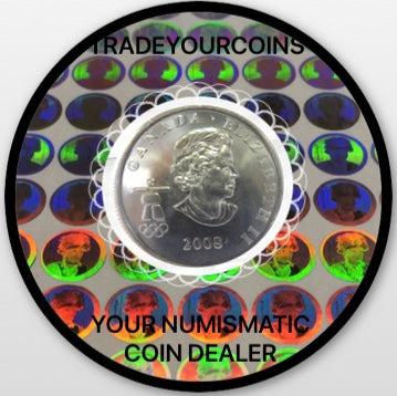 2008 Canada Nickel Plated Steel Quarter- 25 Cents, Sport card-Painted leaf-Figure Skating