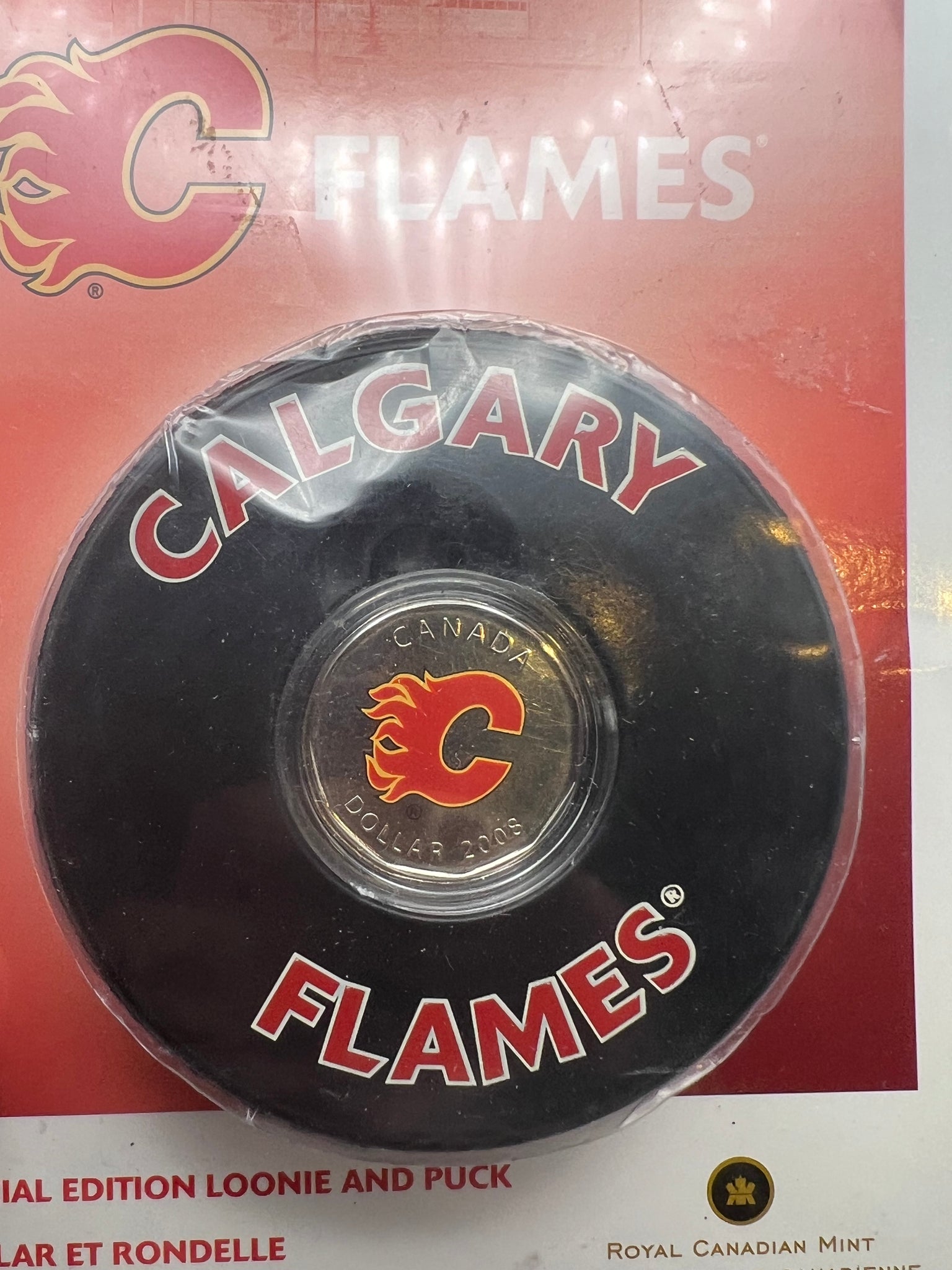 2009 Calgary Flames 1$ Mini puck and mini stick set dollar