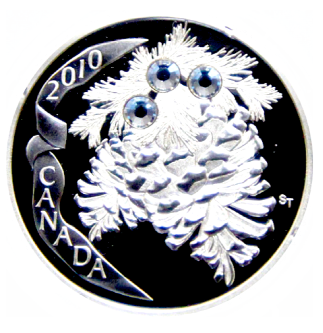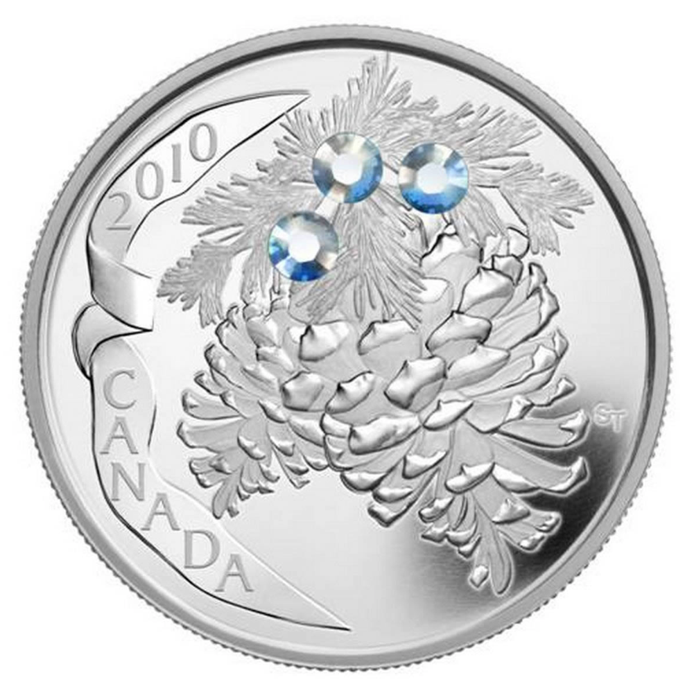 2010 20 Dollars Fine Silver Coin, Holiday Series- Holiday Pine Cones, Moonlight