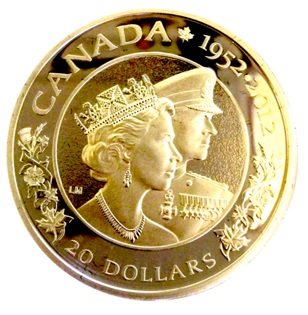 2012 (1952-) 20 Dollars Fine Silver Coin, Queen's Elizabeth II and prince Philip