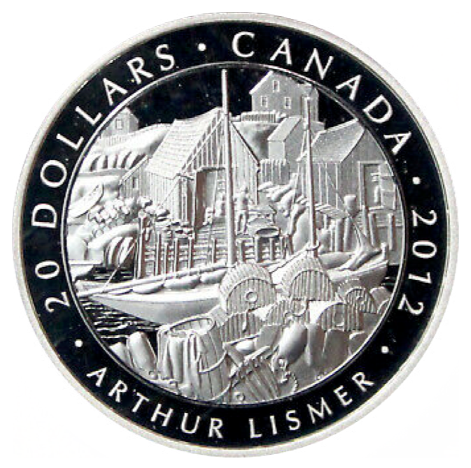 2012 20 Dollars Fine Silver Coin, Nova Scotia Fishing Village, Arthur Lismer