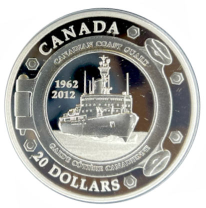 Special features:• Each coin is accompanied by a vial containing a small piece of steel from the pre-refit bow of CCGS Louis S. St-Laurent taken during its refitting to keep the vessel operating until its replacement can be commissioned in 2017. This refitting process is symbolic of the life-cycle of all CCGships, making the steel piece an exceptional memento of both the history of the Canadian Coast Guard and the historic CCGS Louis S. St-Laurent.• Your coin bears the years 1962 and 2012 and the words "Canadian Coast Guard" to commemorate the 50th anniversary.• GST/HST exempt.• Crafted in fine silver (99.99% pure).