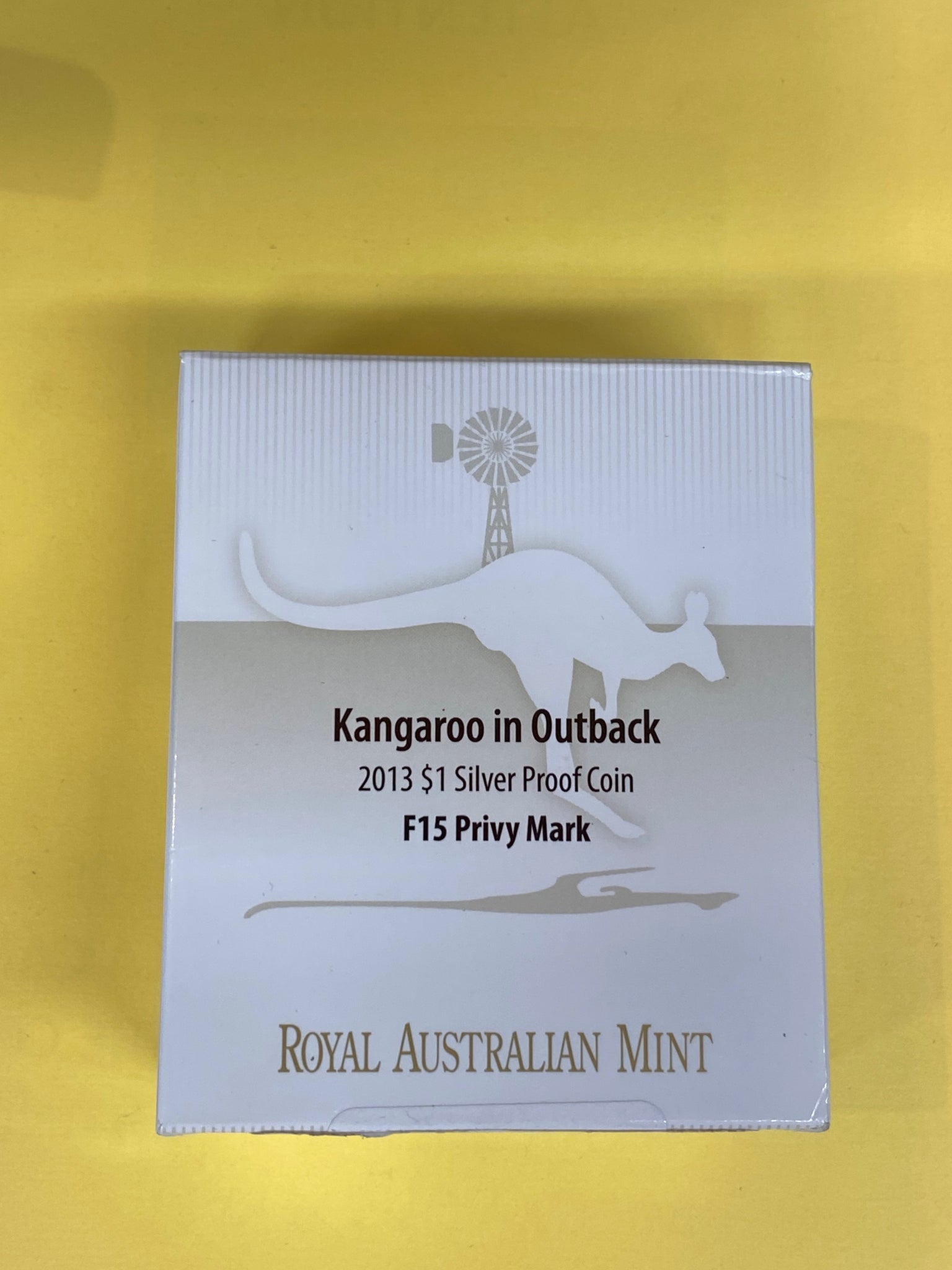2013 $1 Kangaroo In Outback, Fine Silver proof-F-15 Privy Mark