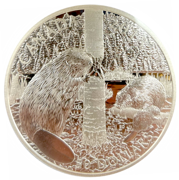 2013 $50 Fifty Dollars, Fine Silver Coin-Beaver