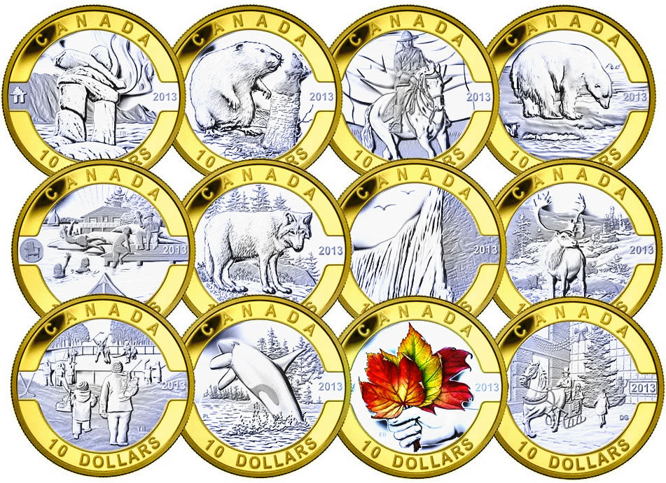 2013 Canada Fine Silver $10 ten dollars O Canada set One, Gold Plated-12 coin