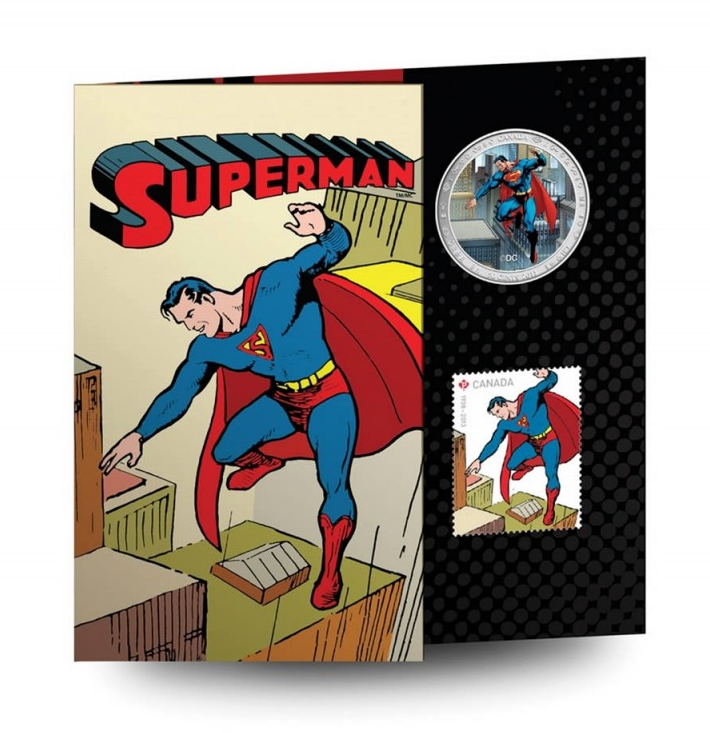 2013 Canada Nickel Half Dollar-50 Cents 75 th Anniversary of Superman-Then and Now coin and Stamp