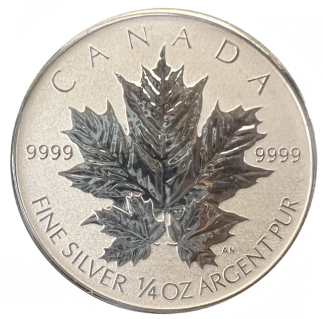 Special features: • Features the “tiara portrait” effigy of Her Majesty Queen Elizabeth II as she first appeared on the silver maple leaf coin from the 1988 original. • This special set features five pure silver sugar maple leaf themed coins in all five fractional denominations which have not appeared as a full set since 2004. • NEW! Celebrates 25 Years of The Royal Canadian Mint’s world-renowned Silver Maple Leaf bullion. • NEW!Mintage of 9999 celebrates the purity of your silver coin set! • The Silver Maple Leaf’s world-renowned purity standard of 99.99% brings prestige to this set. • A unique set featuring five numismaticquality Silver Maple Leaf coins in fractional denominations. • 1 ounce ($5 denomination) • 1/2 ounce ($4 denomination) • 1/4 ounce ($3 denomination) • 1/10 ounce ($2 denomination) • 1/20 ounce ($1 denomination) • GST/HST exempt.