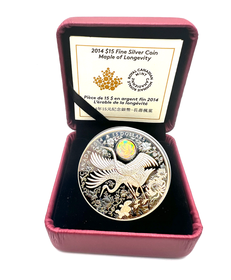 2014 $15 Dollars Fine Silver Coin-Maple of Longevity