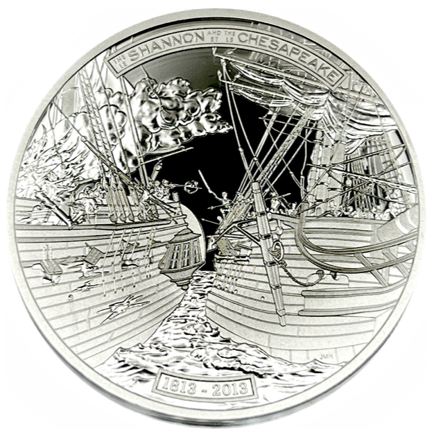 2014 $50 Fifty Dollars, Fine Silver Coin-HMS Shannon and USS Chesapeake