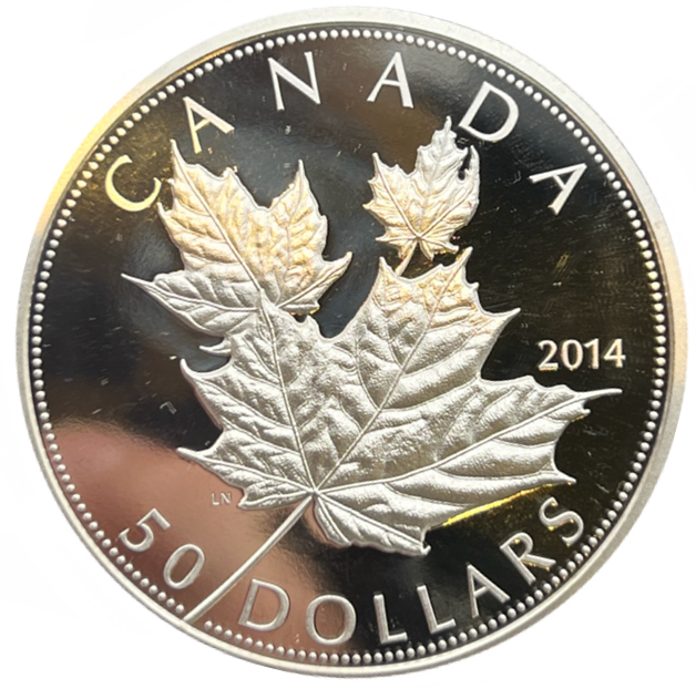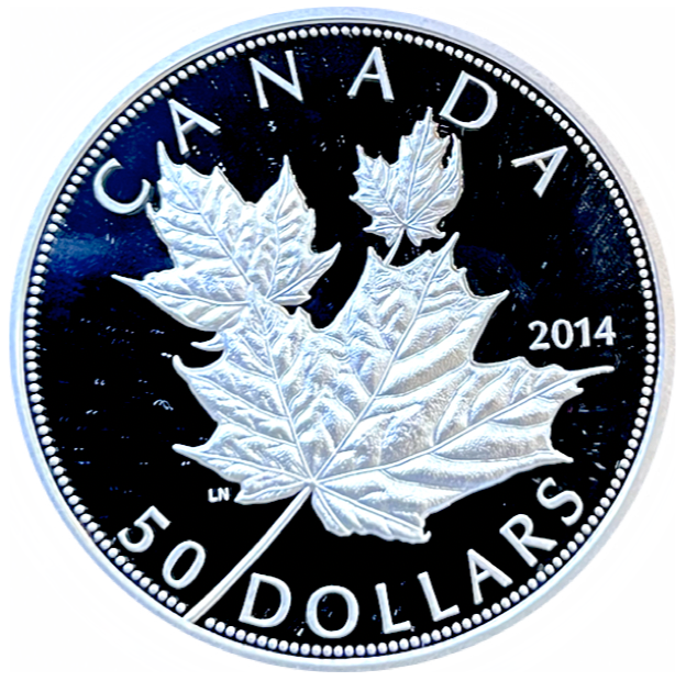 2014 $50 Fifty Dollars, Fine Silver Coin-Maple leaf