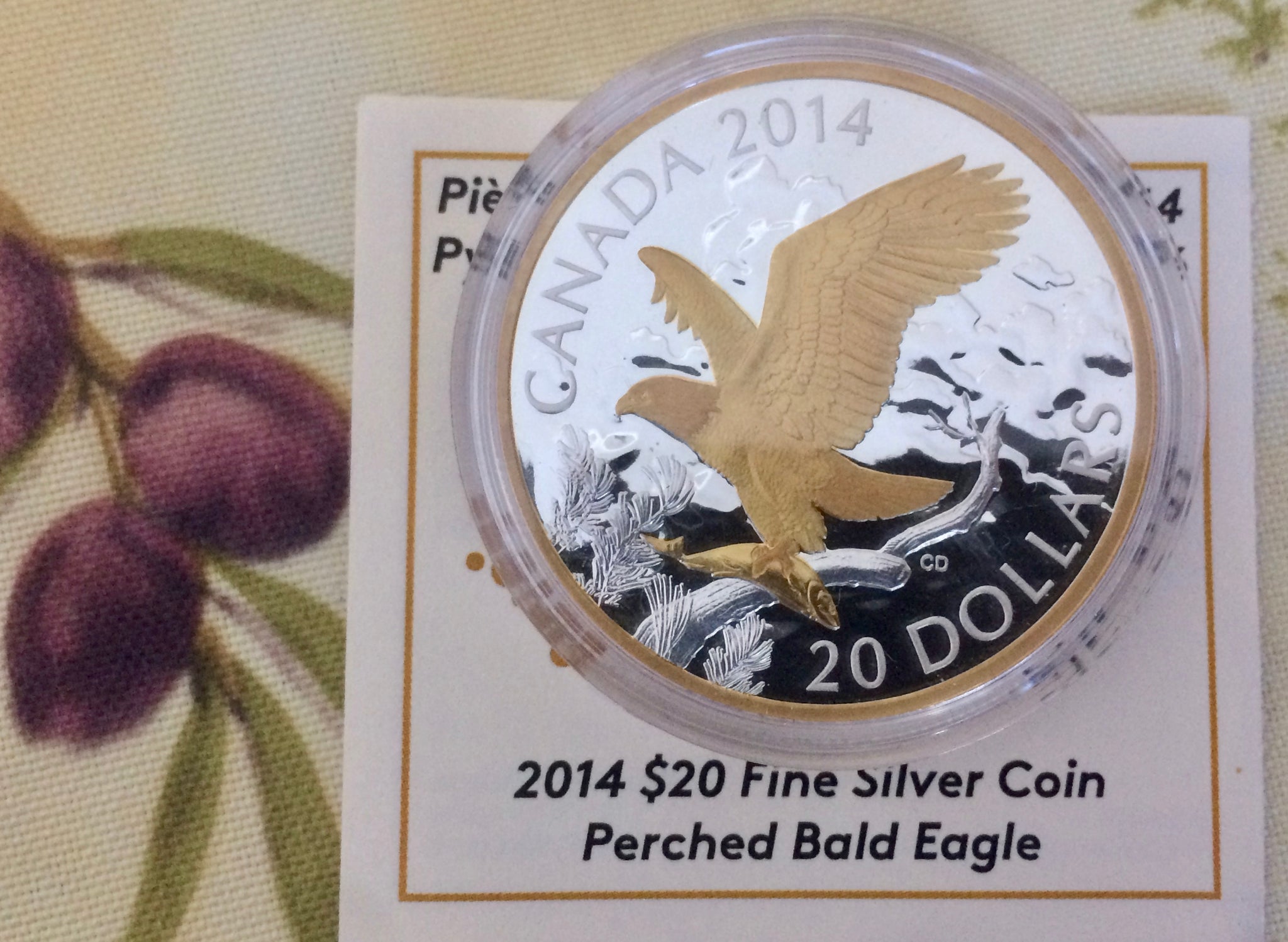 2014 Canada 20 Dollars Fine Silver Coin, Perched Bald Eagle