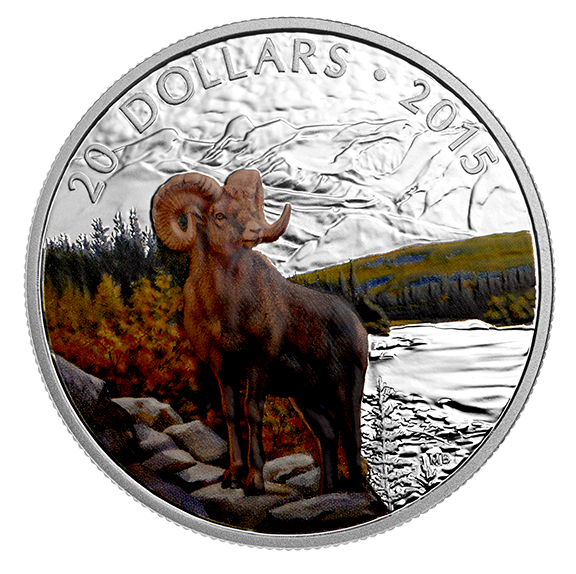 2015 1 oz. Fine Silver Coloured Coin - Bighorn Sheep