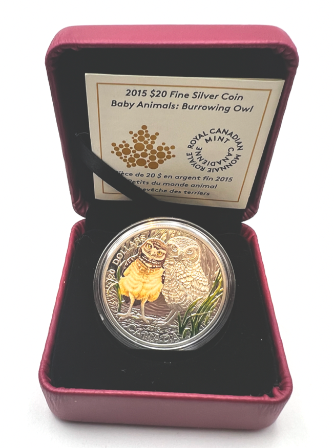2015 Canada 20 Dollars Fine Silver Coin, Baby Animals-Burrowing Owl