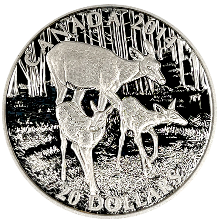 2014 Canada 20 Dollars Fine Silver Coin, The White-Tailed Deer-A Doe and Her Fawns