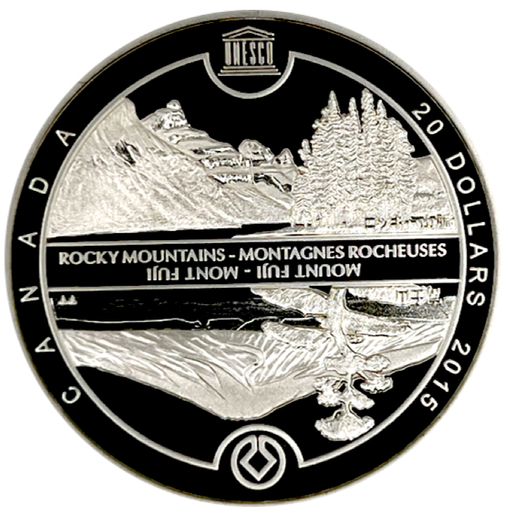2015 Canada 20 Dollars Fine Silver Coin, UNESCO-Mount Fuji-The Canadian Rockies