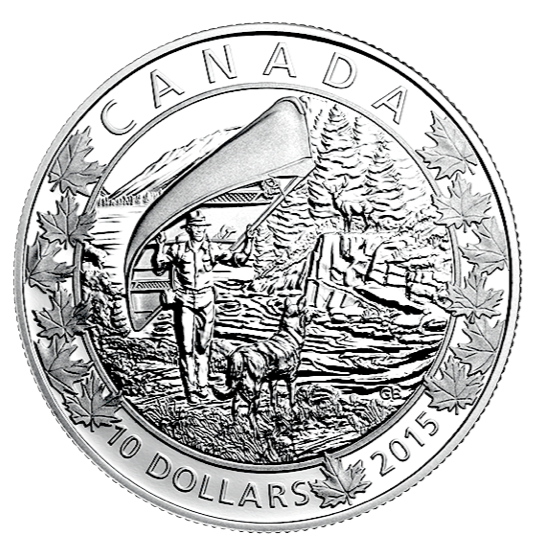 2015 Canada Fine Silver $10 Ten Dollars-Canoe Across Canada: