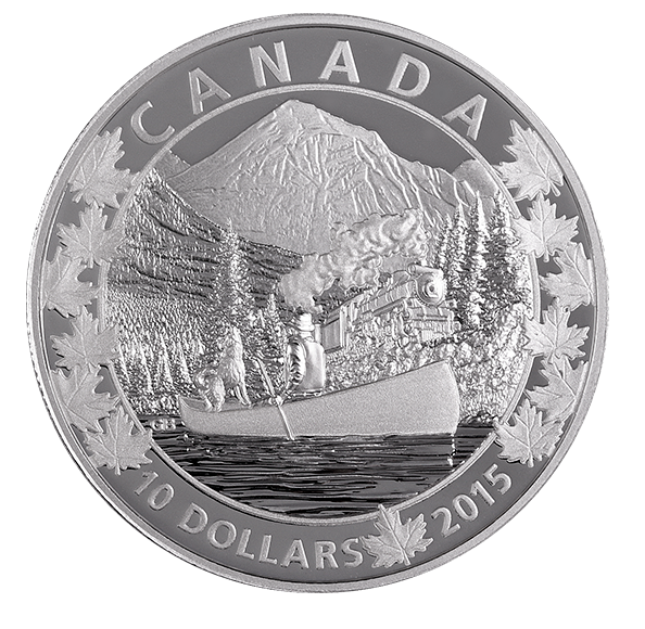 2015 Canada Fine Silver $10 Ten Dollars-Canoe series-Magnificent Mountains