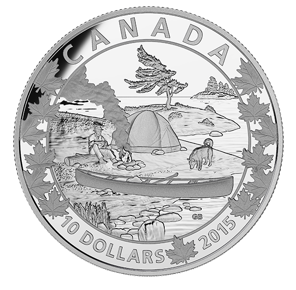 2015 Canada Fine Silver $10 Ten Dollars-Canoe series-Serene Scene