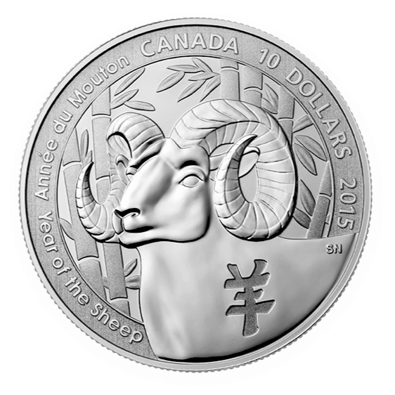 2015 Canada Fine Silver $10 Ten Dollars-Year of the Sheep
