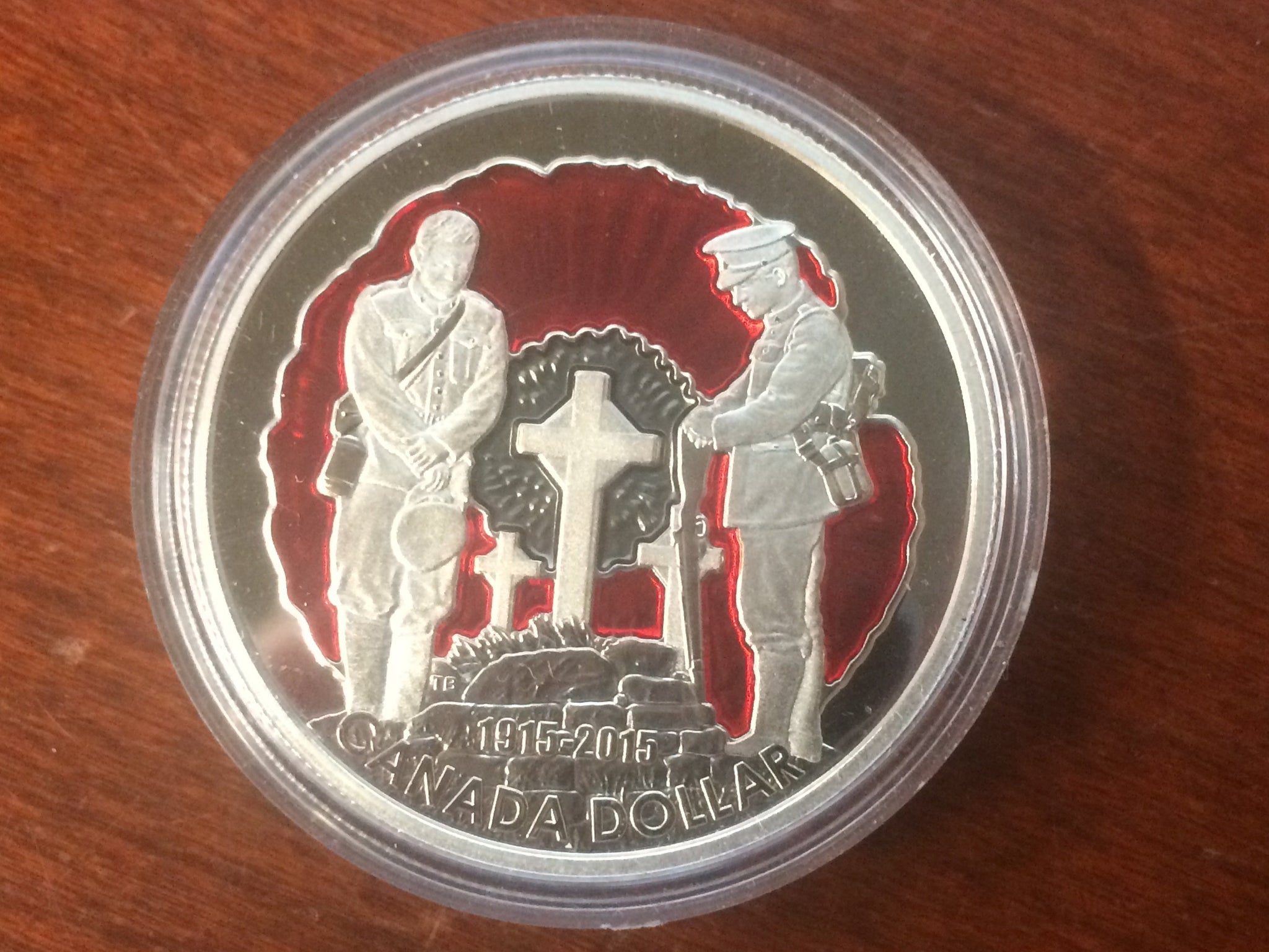 2015 Canada Silver Coloured Proof Dollar-Limited Edition 100th Anniversary of in Flanders Fields