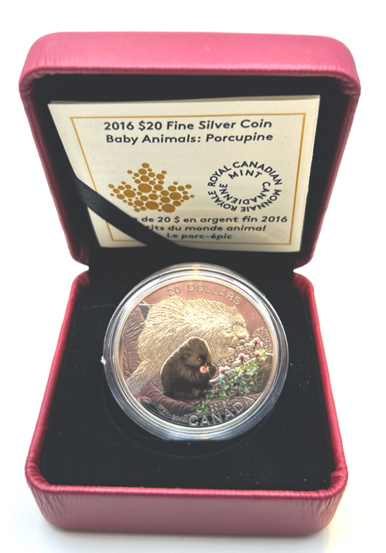 2016 Canada 20 Dollars Fine Silver Coin, Baby Animals-porcupine