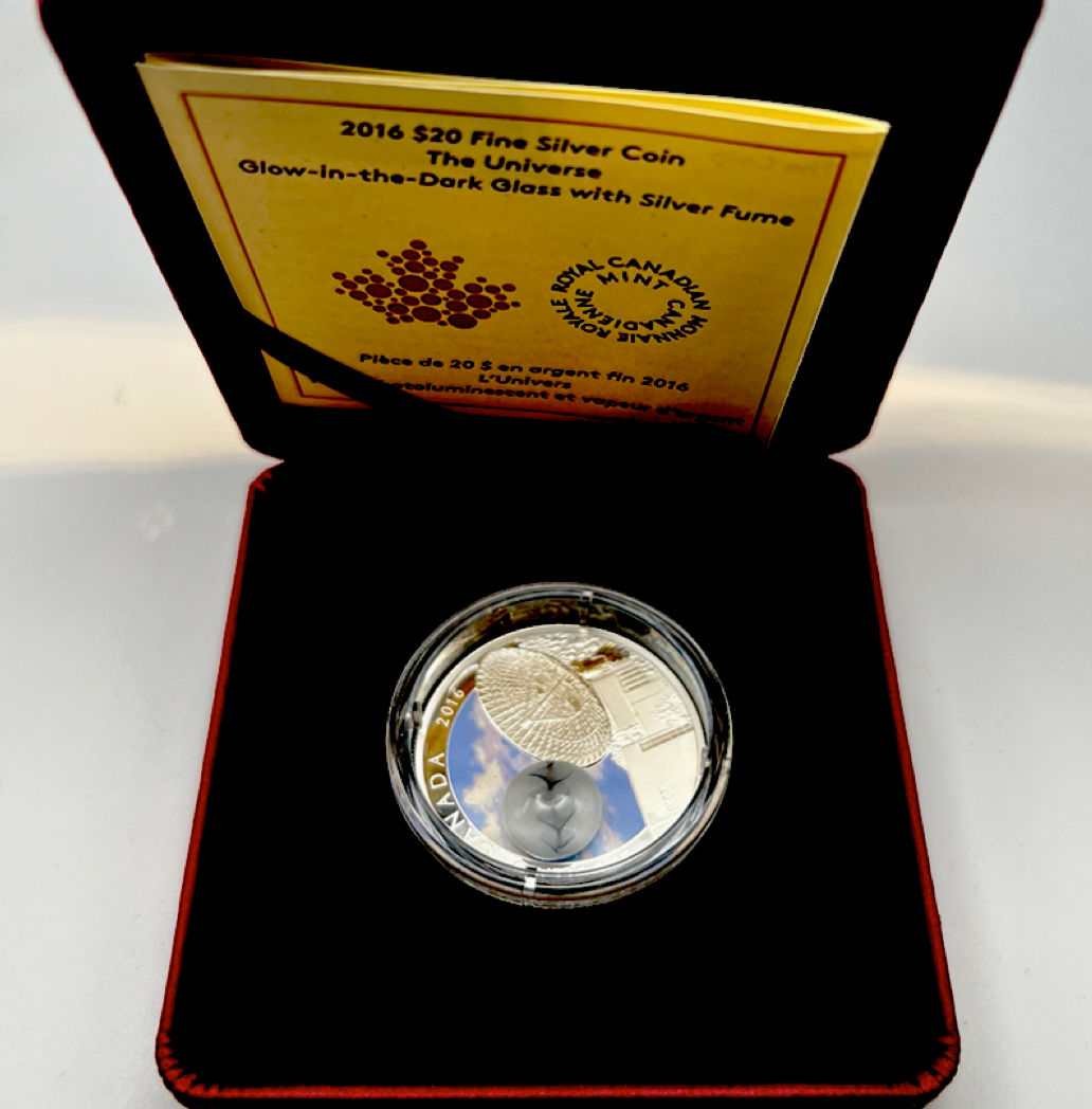 2016 Canada 20 Dollars Fine Silver Coin, The Universe Glow in the Dark Glass with Silver Fume
