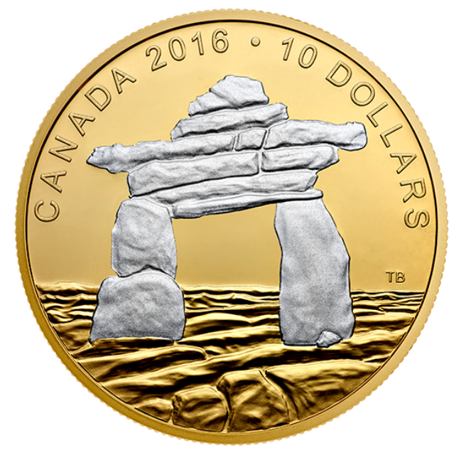 2016 Fine Silver $10 Ten Dollars-Iconic Canada Inukshuk