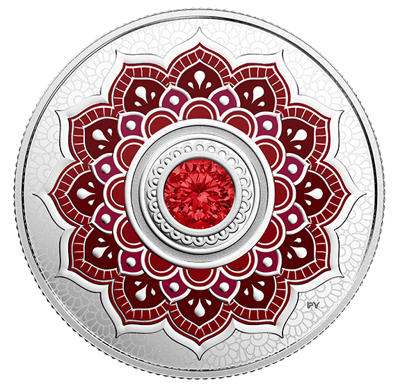 Your coin features a Swarovski® crystal that represents the month’s birthstone, the ruby! And a ruby’s blood-red colour makes it a fitting symbol of love and passion! The traditional birthstone for the hot summer month of July, a ruby is a symbol of zeal and is said to offer fortune, beauty, nobility and love. Ancient cultures also believed it had protective powers that could ward off evil.