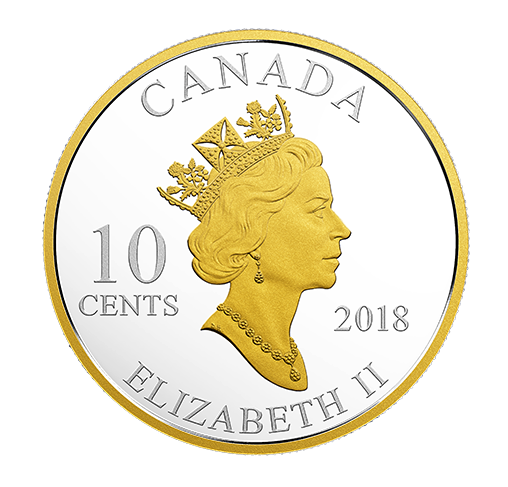 The 2017 Wings of Peace is the most recent commemorative issue of the 10-cent coin. As part of theMy Canada, My Inspiration collection commemorating CANADA 150, it features a reverse design by Amy Choi of Calgary, Alta., and highlights Canada’s reputation as a peacekeeping nation. Instead of a traditional olive branch, the stylized dove clutches a maple leaf that stands as a symbol of hope, peace and good faith. The obverse features the CANADA 150 logo and the effigy of Her Majesty Queen Elizabeth II by Susanna Blunt.