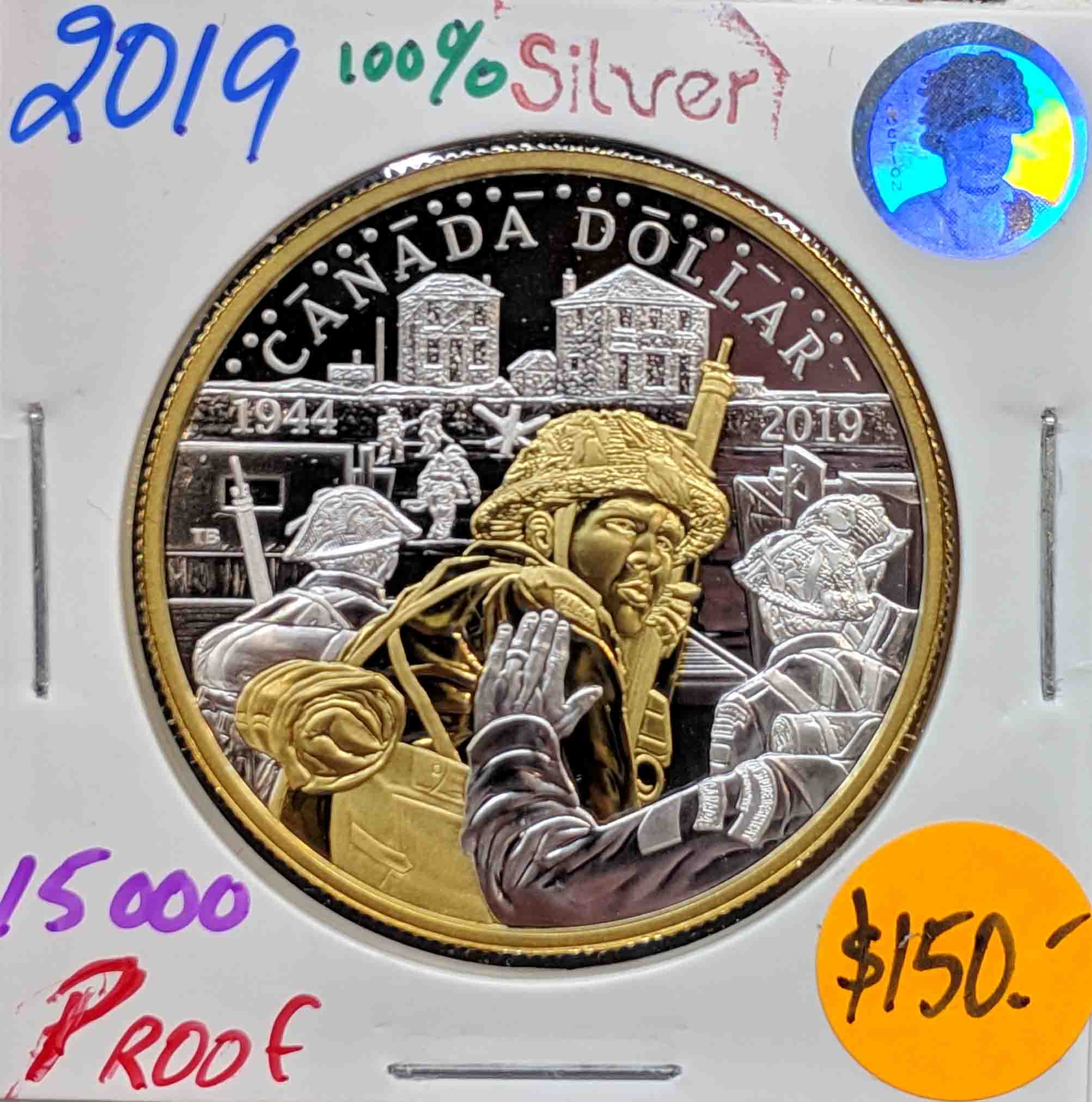 2019 Canada Fine Silver Proof Dollar 75 th Anniversary of D-day Gold Plated