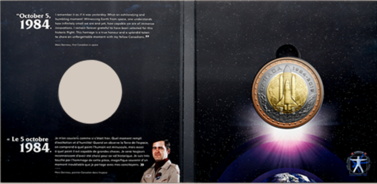 - FEATURES CUTTING-EDGE TECHNOLOGY! Your 2019 tri-metallic 25-cent coin honours the 35th anniversary of Marc Garneau's incredible achievement with a Mint first: a ground-breaking design featuring cutting-edge technology.