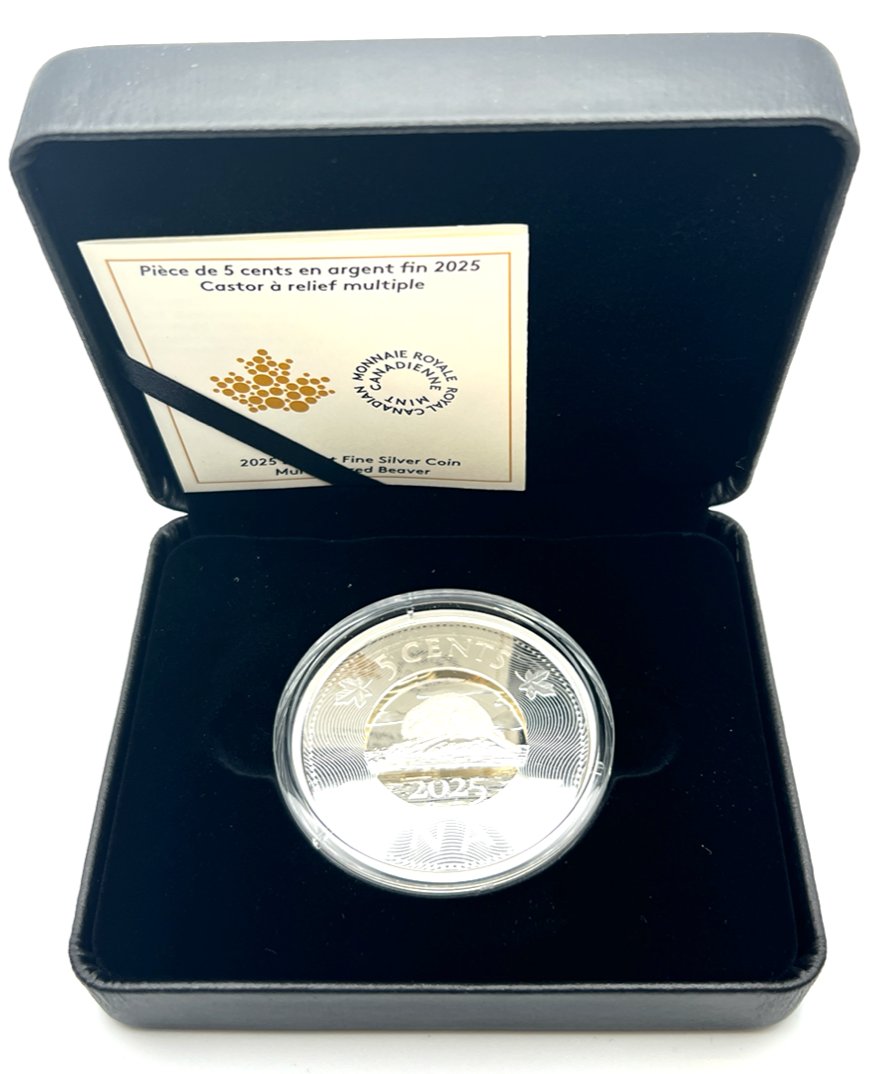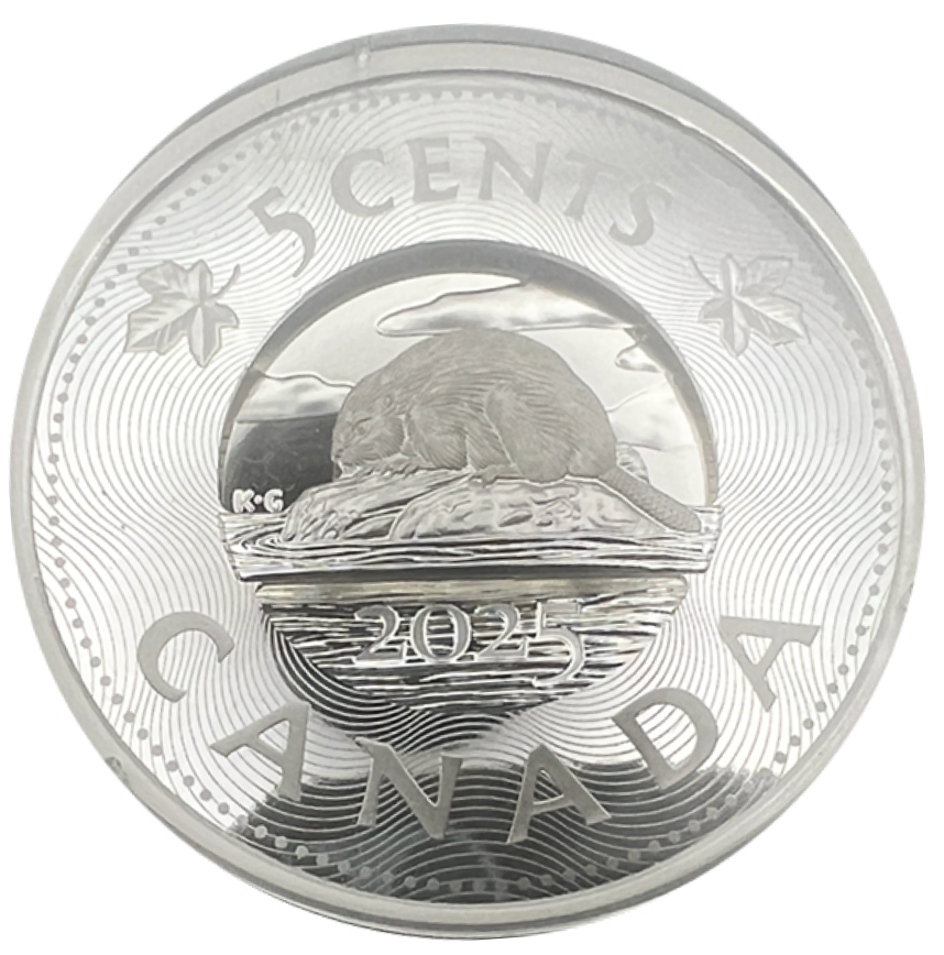 On the 50ᵗʰ anniversary of Castor canadensis becoming an official symbol of Canada, the iconic beaver from G. E. Kruger Gray’s five-cent coin design has been given its own space to shine on this 99.99% pure silver coin, which features layers of engraving—not just on the coin’s surface, but on its interior, too. This is made possible by Multilayered Engraving, an innovative minting technique pioneered by our engineers and previewed in early 2020 (From the R&D Lab: Multilayered Polar Bear). Using special dies, we’re able to engrave behind the reverse’s top plate, which cuts away to present a more multidimensional rendering of this classic coin design featuring a cherished Canadian emblem.