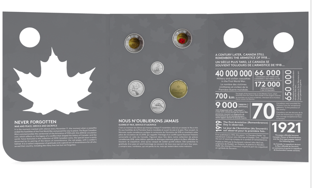 Armistice Collector card Circulation Set - 2018 Canada Nickel Prooflike Uncirculated Coin Set