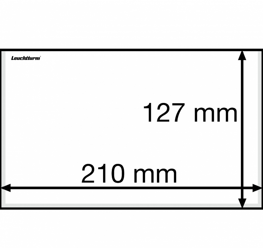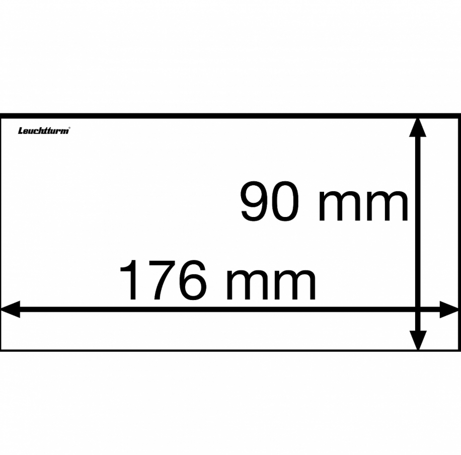 The sheets are closed on three sides (bottom, left and right) and are open at the top. Easy insertion and removal of banknotes without sticking or creasing. The transparent sheets ensure a double-sided view of the banknotes. Material: hard PVC. Packs of 50
